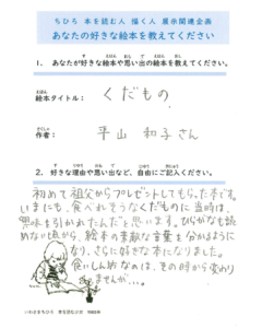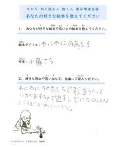 ご来館のみなさまに、思い出の絵本や好きな一冊を教えていただきました。