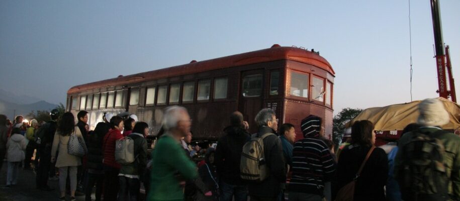 この日は、『窓ぎわのトットちゃん』(黒柳徹子・著) のエピソードにちなんで、約70名のイベント参加者みんなでお泊り。早朝に電車の到着を、当時の広場予定地で見届けました。