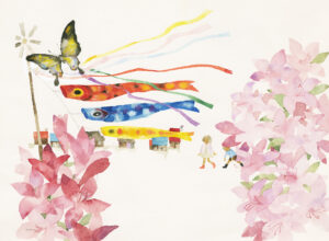 いわさきちひろ つつじとこいのぼり 1950年代後半