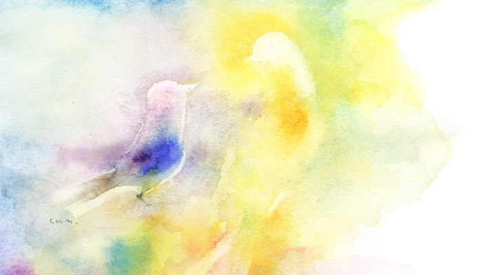 作品:いわさきちひろ 2羽の小鳥『あかちゃんのくるひ』(至光社)より 1969年
