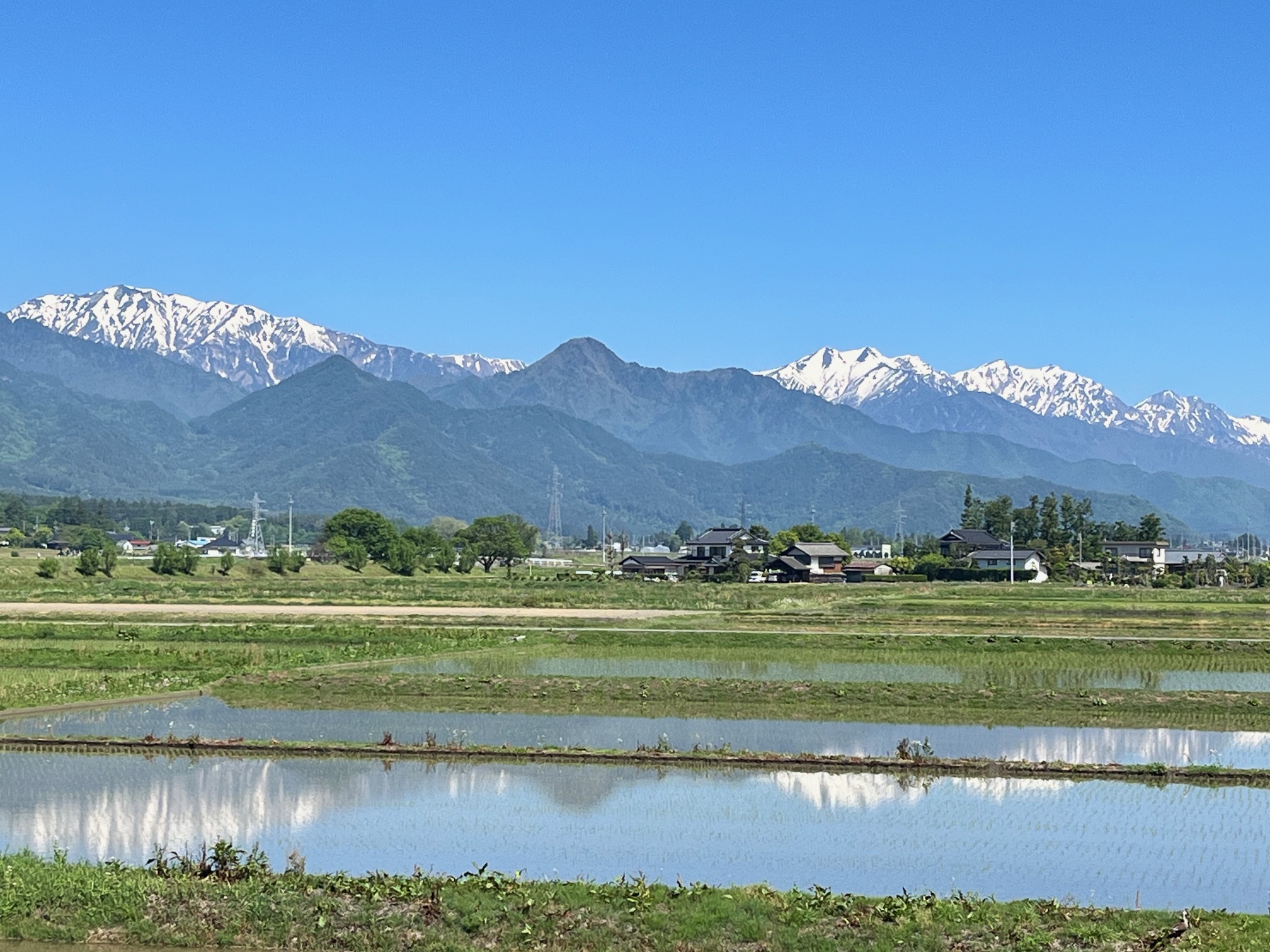 北アルプス連峰が水田に映り込む「水鏡」の絶景が楽しめる“春限定”のウォーキングイベントにぜひご参加ください。松川村の地元ガイドによる案内や安曇野ちひろ美術館スタッフによる解説の他、松川村産のりんごジュースや松川村のお米を使ったおこひるの振る舞いなど、村民によるおもてなしもあります。ウォーキングの後は、美術館にお立ち寄りいただき、ゆっくりお過ごしください。