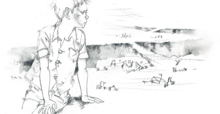 いわさきちひろ 焼け跡を見つめる少年 『わたしがちいさかったときに』(童心社)より 1967年