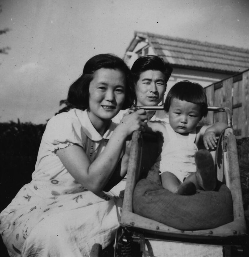 ちひろと夫・善明、ひとり息子の猛 東京都練馬区下石神井の自宅にて 1952年7月
