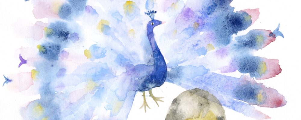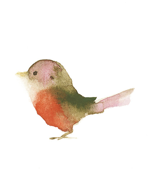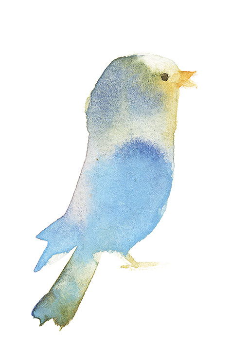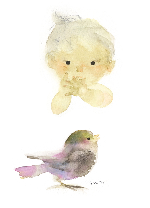 にじみで表現した小鳥たち