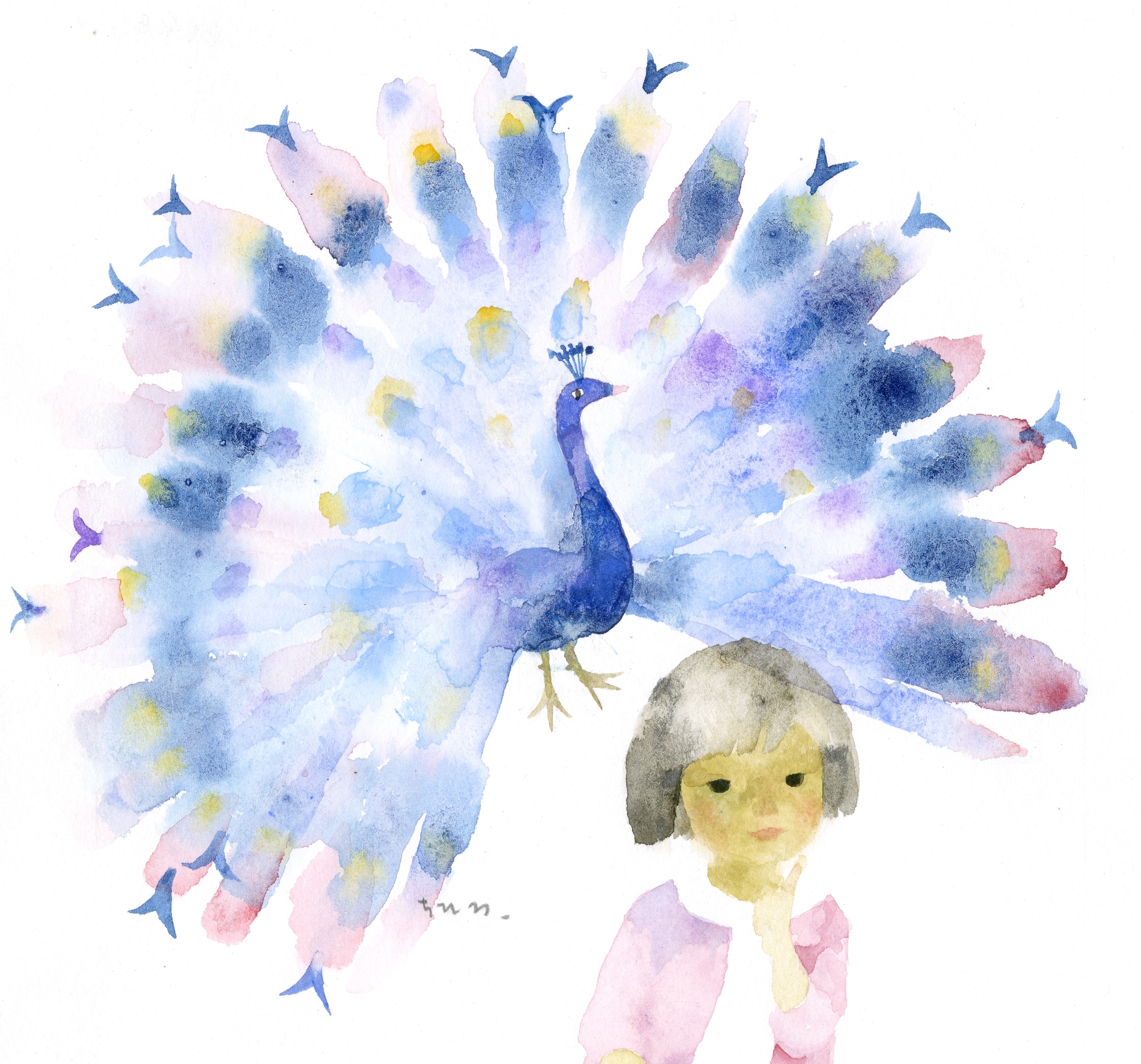 いわさきちひろ くじゃくと少女 1966年