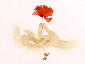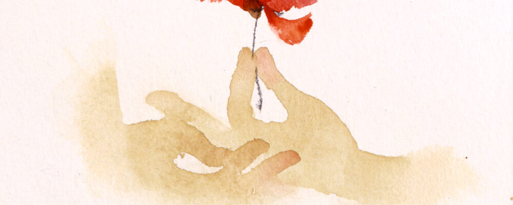 作品:いわさきちひろ 指先でつまんだ赤い花 1971年