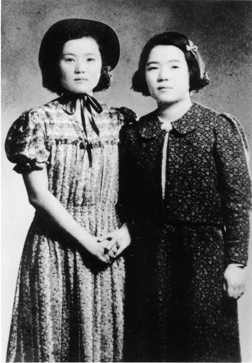 3人姉妹の長女だったちひろは、1939年、20歳のときに、家を継ぐため婿養子を迎えて結婚しました。もっと絵を学びたいという夢をあきらめたうえ、意に添わない相手との結婚でした。結婚式の後、中国・大連に赴任する夫を見送り、2ヵ月遅れて現地に向かう前日に撮られたのがこの写真です。