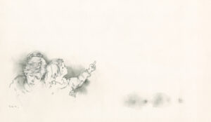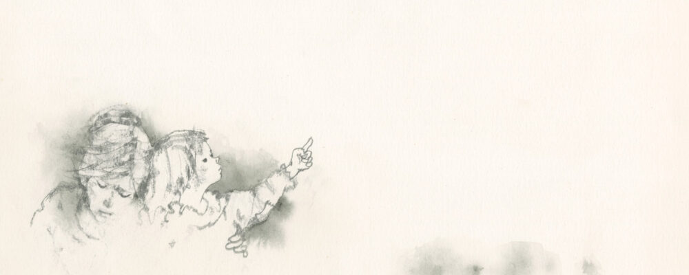 いわさきちひろ 天井を指さす少女と母親『わたしがちいさかったときに』(童心社)より 1967年