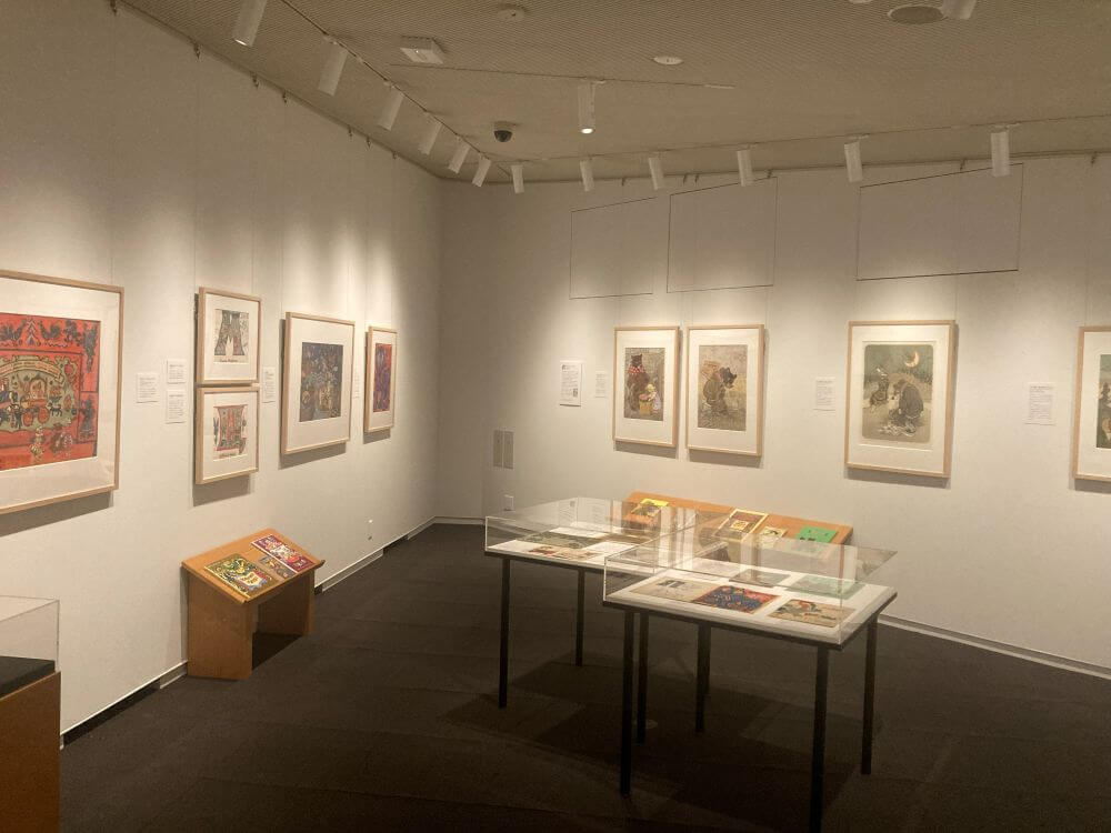 展示室では、未収録の作品を含むウクライナ民話絵本『てぶくろ』の原画はもちろん、東スラブの国々の民話絵本の世界を感じられる空間になっています。
