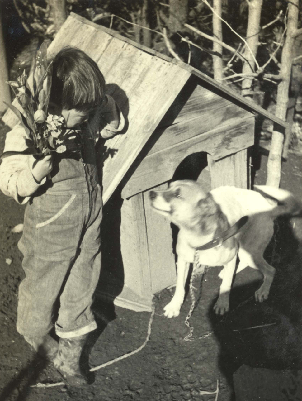 長男・猛(3歳)とパッピー(パップの子ども) 1955年