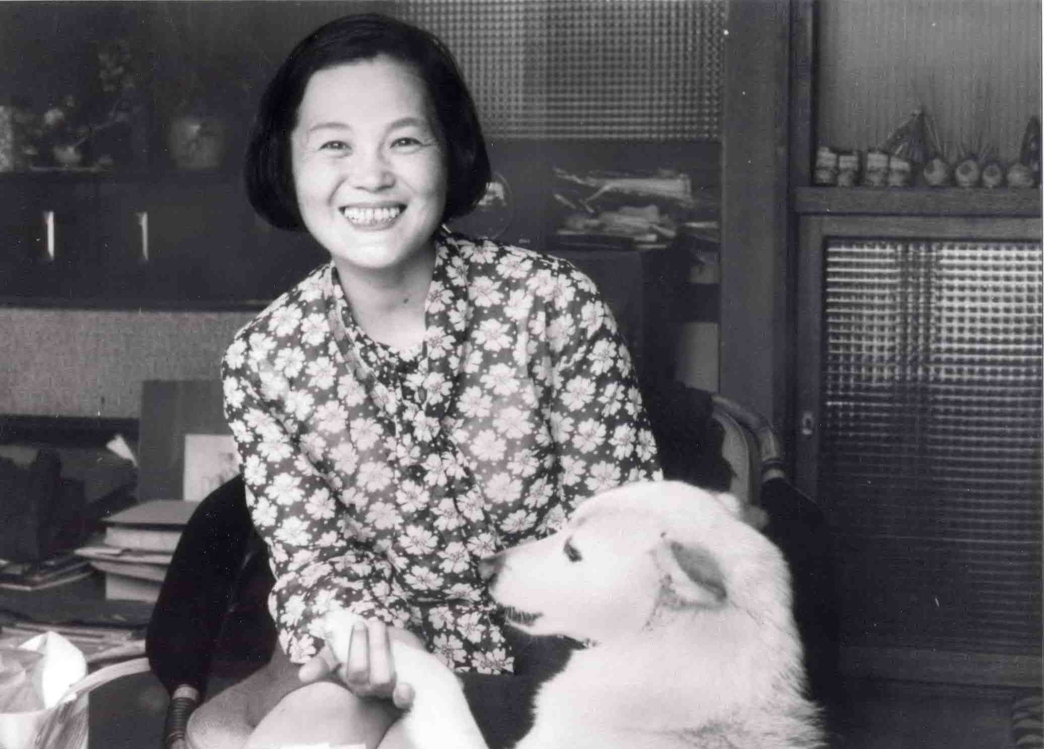 いわさきちひろと愛犬チロ アトリエにて 1971年